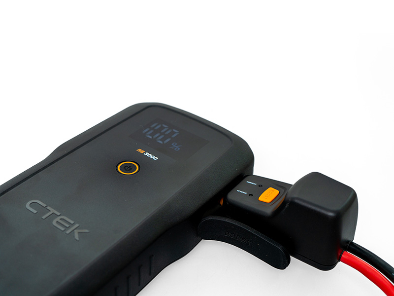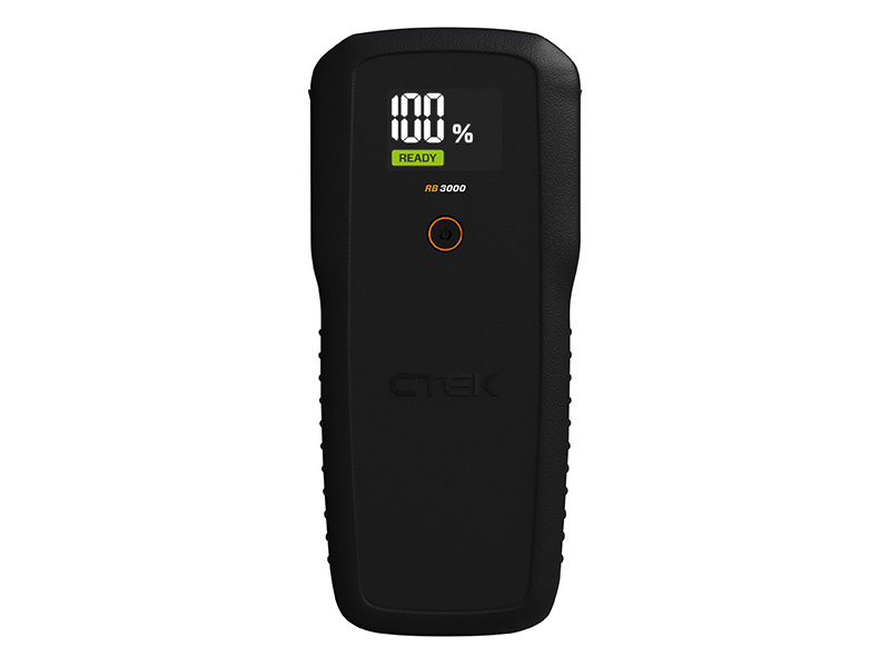 RB 3000: instant starting power for vehicles with a discharged 12V battery. 30 starts on a single charge. Good safety features, USB charging ports (USB A and USB-C) and built-in warning light with multiple flash programs (including SOS and strobe) increase the versatility of the device. Detachable 25 cm jump leads with charging clamps. 10 protection features, such as reverse polarity protection and spark-free. For lead batteries: Wet, MF, Ca/Ca, AGM, EFB, GEL. Compact design → easy to store: charge at least every 6 months. Delivered in a stylish and durable case. Starting current 1300A (max. 1980A), internal lithium-ion batteries: 4 x 4000mAh, fast charging: 2.5 h, charging via USB-C port: 1m charging cable. Operating and storage temperature range: -20°C ... +55°C
