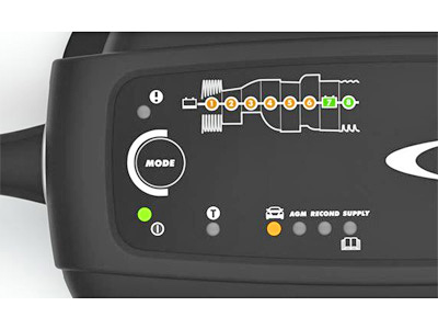 Automatic charger MXS 10EC, 8-step, functions as a power supply, 4m charging cables, protective silicon rubber bumper. With maintenance charge, temperature sensor, 20-200Ah lead-acid batteries, (open, maintenance-free, AGM and gel batteries), IP65