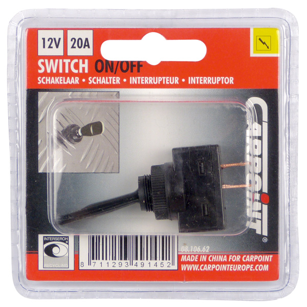Melns Carpoint ieslēgšanas/izslēgšanas slēdzis ar melnu sviru, kas iedegas, kad slēdzis ir ieslēgts. Slēdzis ir piemērots 12V, un tā maksimālā slodze ir 20A. Montāžas cauruma diametrs 12mm un montāžas vītnes garums 9mm.