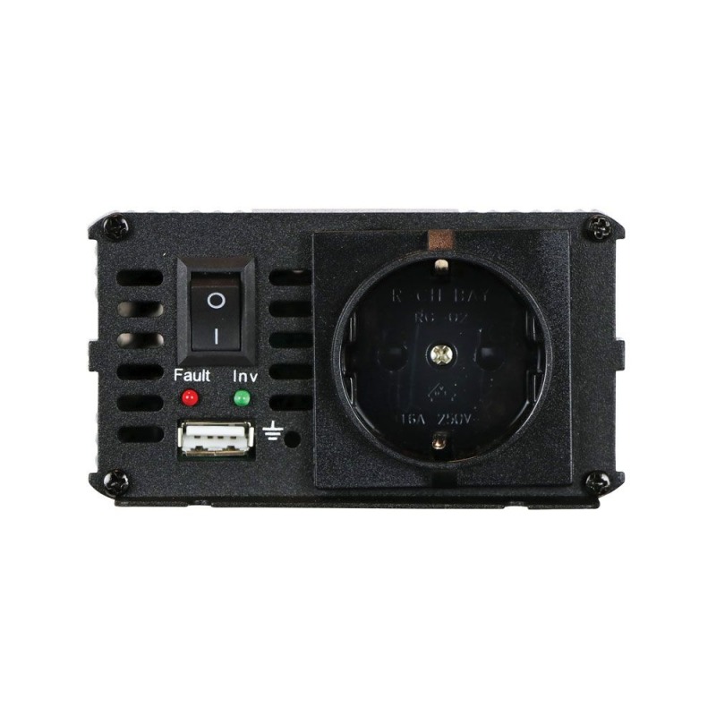 Augstas kvalitātes DC / AC pārveidotājs ar aizsardzību pret īssavienojumu un pārkaršanu. Ērtais un kvalitatīvais strāvas pārveidotājs, pārveido strāvu no 24V uz 230V. Patstāvīga izejas jauda 300W, īslaicīga 600W. Savienojams caur 24V akumulatoru. Automātiska izslēgšanās. Pārveidotājs ir daudzfunkcionāls, pateicoties papildu pievienotajam 5V 2,1A USB portam, kuru varat ērti izmantot tālruņa uzlādēšanai.