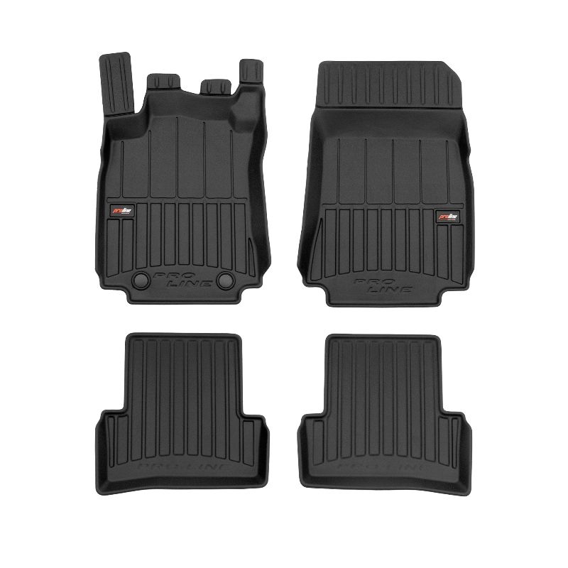 ProLine 3D rubber mats. High-quality plastic, rubber compound TPE, black, edge height 7 cm, mounting method – clamps. Perfect fit thanks to innovative 3D scanning technology. Additional edge protection – height 7 cm, always a clean car. Extremely durable material with a unique non-slip structure that is resistant to dirt. Excellent stability thanks to clamps – easy to install with one click. Protection for the footwell – comfort that allows the driver to rest their feet.n3D ProLine high-quality rubber 3D rubber mat set helps keep the car clean. Modern and functional design and extra high edges ensure effective collection of water and dirt and prevent them from escaping. This ensures the cleanliness of the car interior. Made of high-quality rubber that does not contain toxic ingredients. Odorless. The 3D rubber mat set adheres perfectly and adheres well to the interior floor. The set of rubber 3D rubber mats remains flexible even with temperature changes. The special surface prevents the mats from slipping while driving, which significantly affects safety and driving comfort.