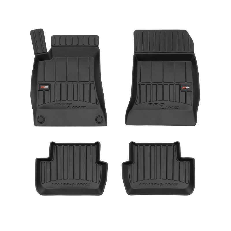 ProLine 3D rubber mats. High-quality plastic, rubber compound TPE, black, edge height 7 cm, mounting method – clamps. Perfect fit thanks to innovative 3D scanning technology. Additional edge protection – height 7 cm, always a clean car. Extremely durable material with a unique non-slip structure that is resistant to dirt. Excellent stability thanks to clamps – easy to install with one click. Protection for the footwell – comfort that allows the driver to rest their feet.n3D ProLine high-quality rubber 3D rubber mat set helps keep the car clean. Modern and functional design and extra high edges ensure effective collection of water and dirt and prevent them from escaping. This ensures the cleanliness of the car interior. Made of high-quality rubber that does not contain toxic ingredients. Odorless. The 3D rubber mat set adheres perfectly and adheres well to the interior floor. The set of rubber 3D rubber mats remains flexible even with temperature changes. The special surface prevents the mats from slipping while driving, which significantly affects safety and driving comfort.