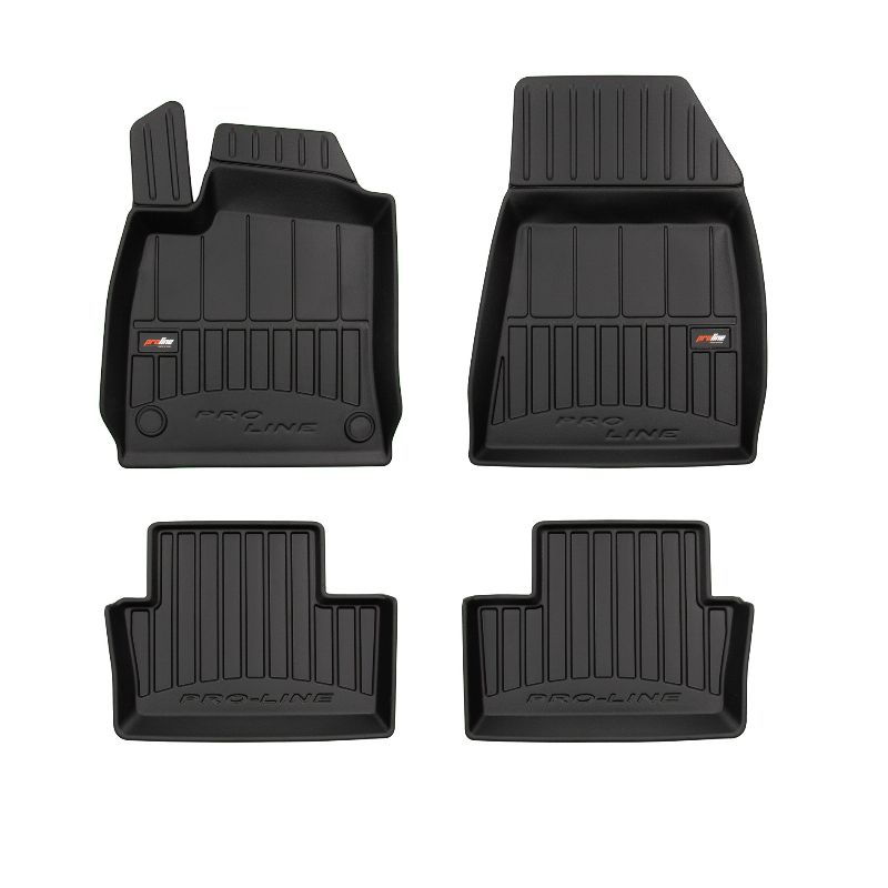 ProLine 3D rubber mats. High-quality plastic, rubber compound TPE, black, edge height 7 cm, mounting method – clamps. Perfect fit thanks to innovative 3D scanning technology. Additional edge protection – height 7 cm, always a clean car. Extremely durable material with a unique non-slip structure that is resistant to dirt. Excellent stability thanks to clamps – easy to install with one click. Protection for the footwell – comfort that allows the driver to rest their feet.n3D ProLine high-quality rubber 3D rubber mat set helps keep the car clean. Modern and functional design and extra high edges ensure effective collection of water and dirt and prevent them from escaping. This ensures the cleanliness of the car interior. Made of high-quality rubber that does not contain toxic ingredients. Odorless. The 3D rubber mat set adheres perfectly and adheres well to the interior floor. The set of rubber 3D rubber mats remains flexible even with temperature changes. The special surface prevents the mats from slipping while driving, which significantly affects safety and driving comfort.