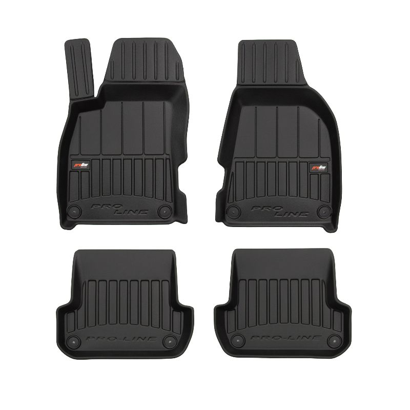ProLine 3D rubber mats. High-quality plastic, rubber compound TPE, black, edge height 7 cm, mounting method – clamps. Perfect fit thanks to innovative 3D scanning technology. Additional edge protection – height 7 cm, always a clean car. Extremely durable material with a unique non-slip structure that is resistant to dirt. Excellent stability thanks to clamps – easy to install with one click. Protection for the footwell – comfort that allows the driver to rest their feet.n3D ProLine high-quality rubber 3D rubber mat set helps keep the car clean. Modern and functional design and extra high edges ensure effective collection of water and dirt and prevent them from escaping. This ensures the cleanliness of the car interior. Made of high-quality rubber that does not contain toxic ingredients. Odorless. The 3D rubber mat set adheres perfectly and adheres well to the interior floor. The set of rubber 3D rubber mats remains flexible even with temperature changes. The special surface prevents the mats from slipping while driving, which significantly affects safety and driving comfort.