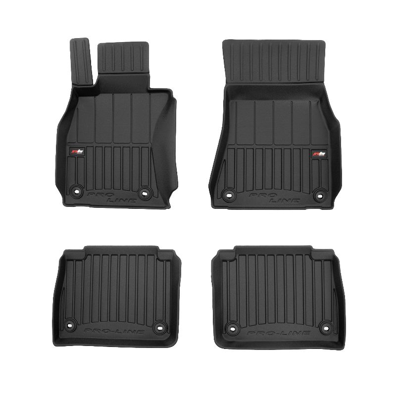 ProLine 3D rubber mats. High-quality plastic, rubber compound TPE, black, edge height 7 cm, mounting method – clamps. Perfect fit thanks to innovative 3D scanning technology. Additional edge protection – height 7 cm, always a clean car. Extremely durable material with a unique non-slip structure that is resistant to dirt. Excellent stability thanks to clamps – easy to install with one click. Protection for the footwell – comfort that allows the driver to rest their feet.n3D ProLine high-quality rubber 3D rubber mat set helps keep the car clean. Modern and functional design and extra high edges ensure effective collection of water and dirt and prevent them from escaping. This ensures the cleanliness of the car interior. Made of high-quality rubber that does not contain toxic ingredients. Odorless. The 3D rubber mat set adheres perfectly and adheres well to the interior floor. The set of rubber 3D rubber mats remains flexible even with temperature changes. The special surface prevents the mats from slipping while driving, which significantly affects safety and driving comfort.