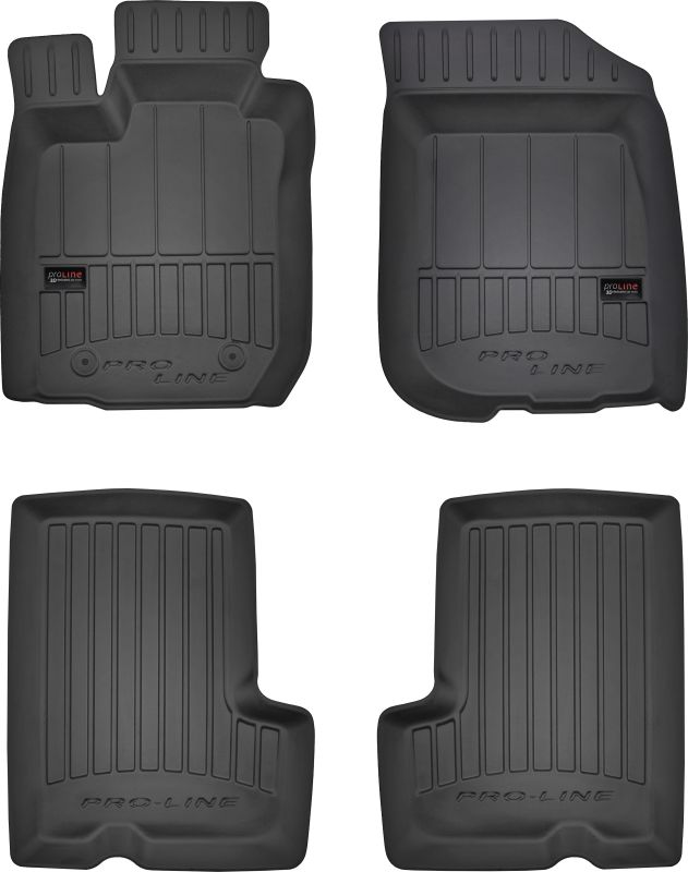 ProLine 3D rubber mats. High-quality plastic, rubber compound TPE, black, edge height 7 cm, mounting method – clamps. Perfect fit thanks to innovative 3D scanning technology. Additional edge protection – height 7 cm, always a clean car. Extremely durable material with a unique non-slip structure that is resistant to dirt. Excellent stability thanks to clamps – easy to install with one click. Protection for the footwell – comfort that allows the driver to rest their feet.n3D ProLine high-quality rubber 3D rubber mat set helps keep the car clean. Modern and functional design and extra high edges ensure effective collection of water and dirt and prevent them from escaping. This ensures the cleanliness of the car interior. Made of high-quality rubber that does not contain toxic ingredients. Odorless. The 3D rubber mat set adheres perfectly and adheres well to the interior floor. The set of rubber 3D rubber mats remains flexible even with temperature changes. The special surface prevents the mats from slipping while driving, which significantly affects safety and driving comfort.