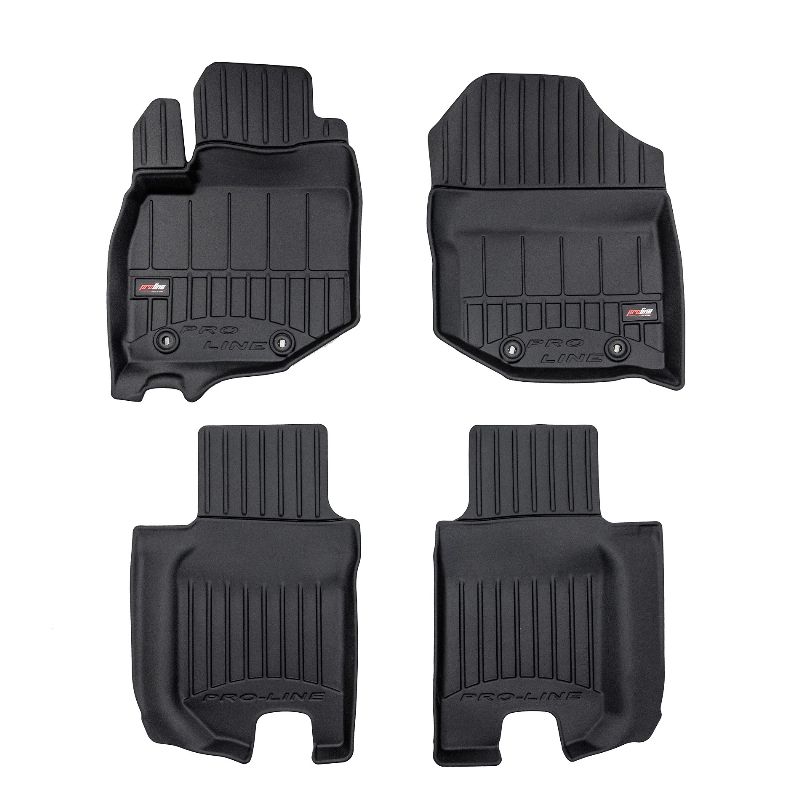 ProLine 3D rubber mats. High-quality plastic, rubber compound TPE, black, edge height 7 cm, mounting method – clamps. Perfect fit thanks to innovative 3D scanning technology. Additional edge protection – height 7 cm, always a clean car. Extremely durable material with a unique non-slip structure that is resistant to dirt. Excellent stability thanks to clamps – easy to install with one click. Protection for the footwell – comfort that allows the driver to rest their feet.\n3D ProLine high-quality rubber 3D rubber mat set helps keep the car clean. Modern and functional design and extra high edges ensure effective collection of water and dirt and prevent them from escaping. This ensures the cleanliness of the car interior. Made of high-quality rubber that does not contain toxic ingredients. Odorless. The 3D rubber mat set adheres perfectly and adheres well to the interior floor. The set of rubber 3D rubber mats remains flexible even with temperature changes. The special surface prevents the mats from slipping while driving, which significantly affects safety and driving comfort.