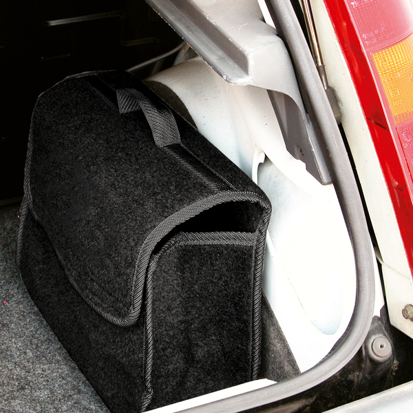 Bagāžnieka soma organaizers ir ideāls risinājums avārijas trīsstūra, ķīmijas, eļļas vai dzesēšanas šķidruma pudeles un rezerves spuldžu komplekta uzglabāšanai automašīnā. Somai ir viens liels nodalījums. Organizatoram ir iestrādāta Velcro lenta ārpusē, kas ļauj nostiprināt somu bagažniekā uz paklāja. Bagāžnieka somu var aizvērt ar parocīgo Velcro lenti.