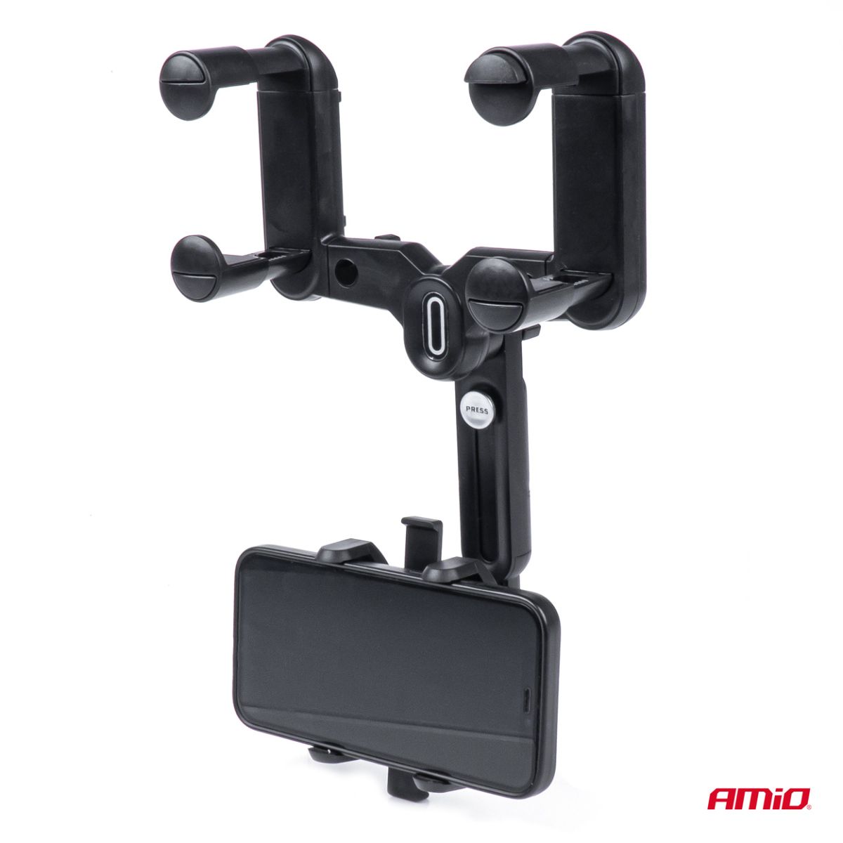 The car holder for the phone on the rear-view mirror will hold the device stably and will not restrict the driver#39;s visibility. In addition, the holder has a 360-degree adjustable head and non-slip pads inside the clamping jaws.