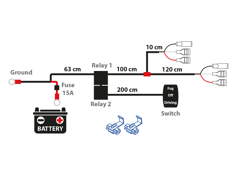 Deutsch CAN montāžas vadi diviem papildlukturiem vai miglas lukturiem.