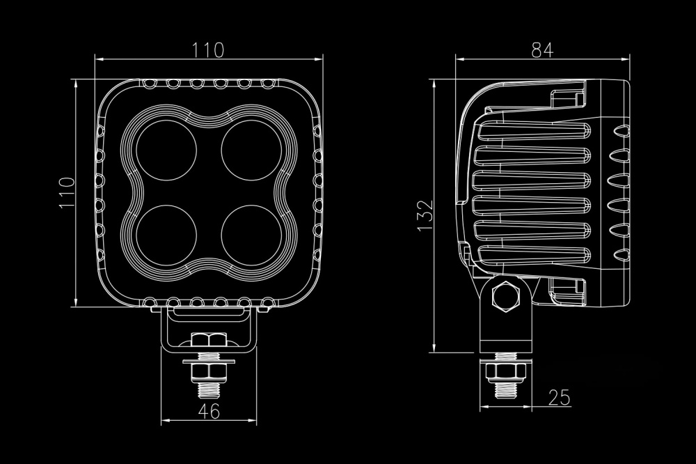 Gaismekļa garums/diametrs (mm) - 110x110(132)x84 ;