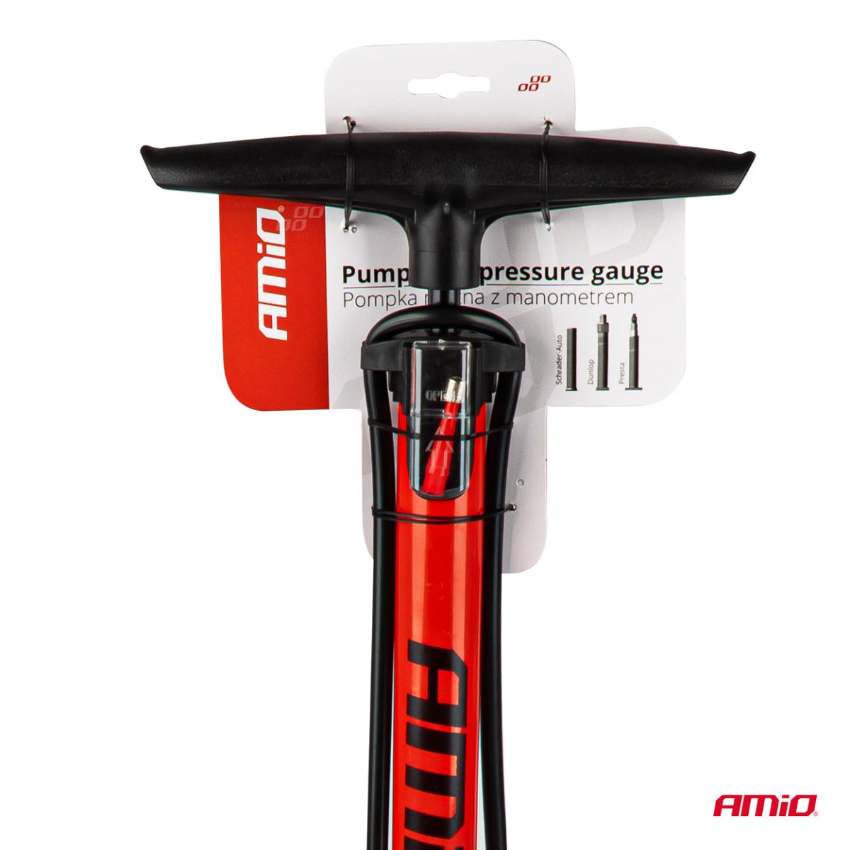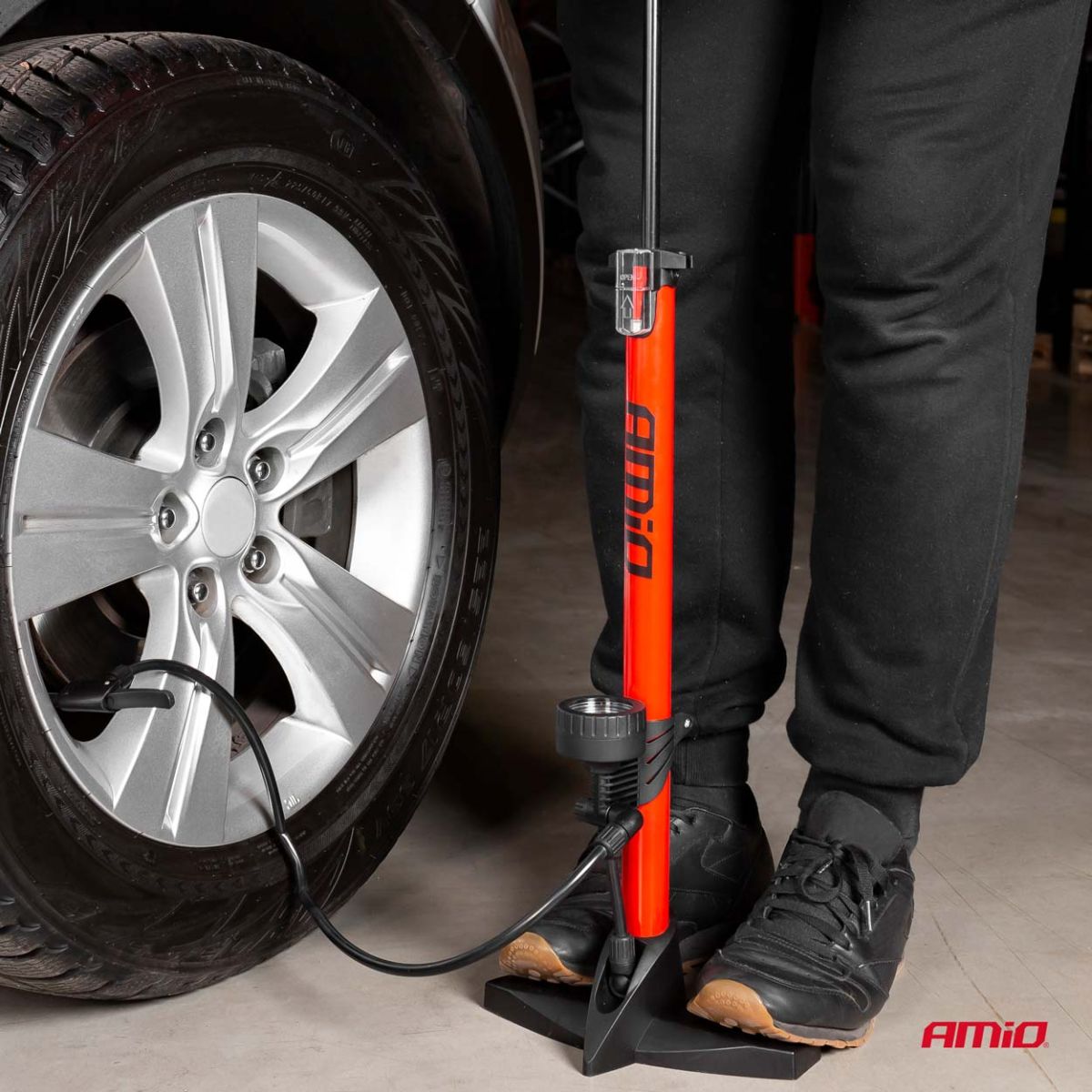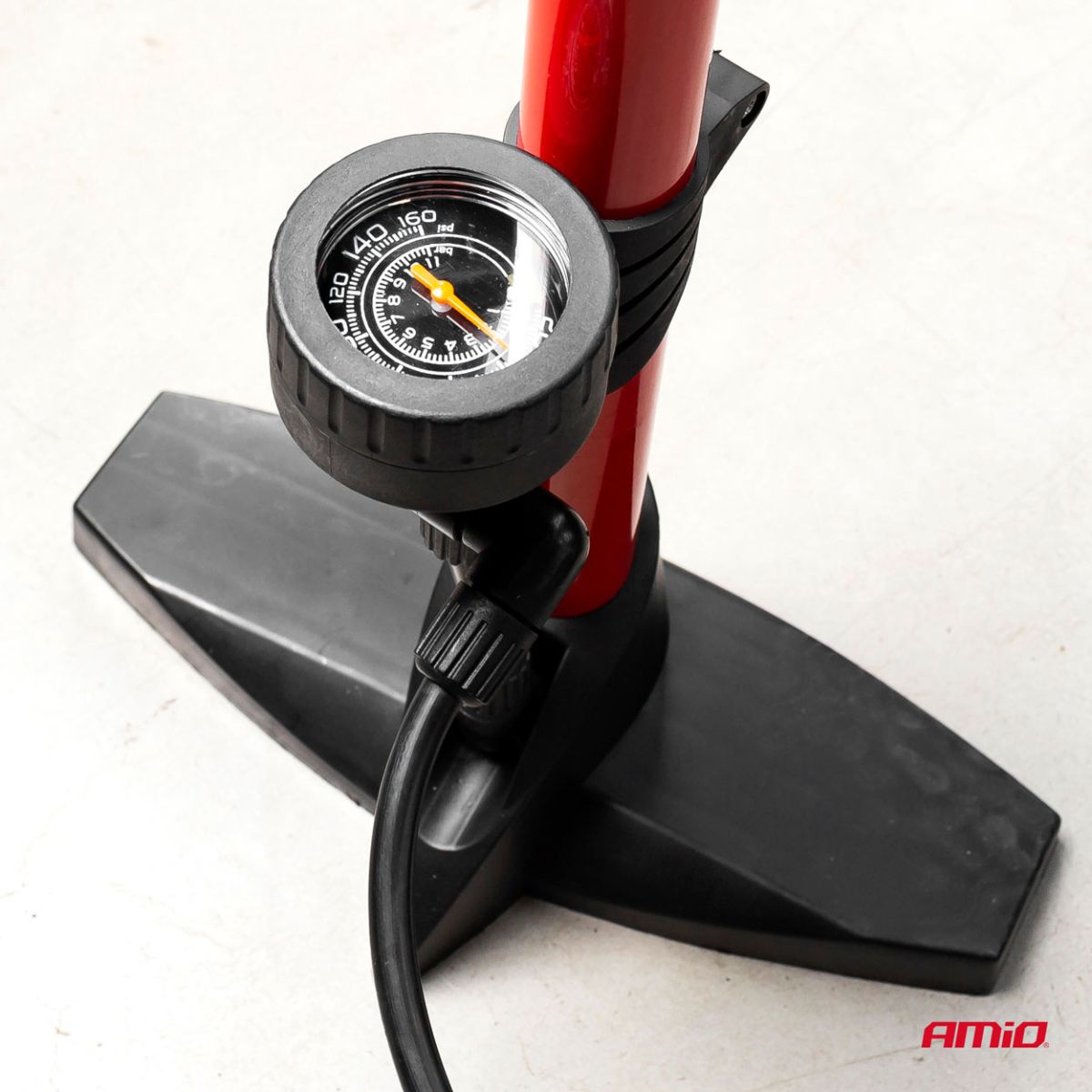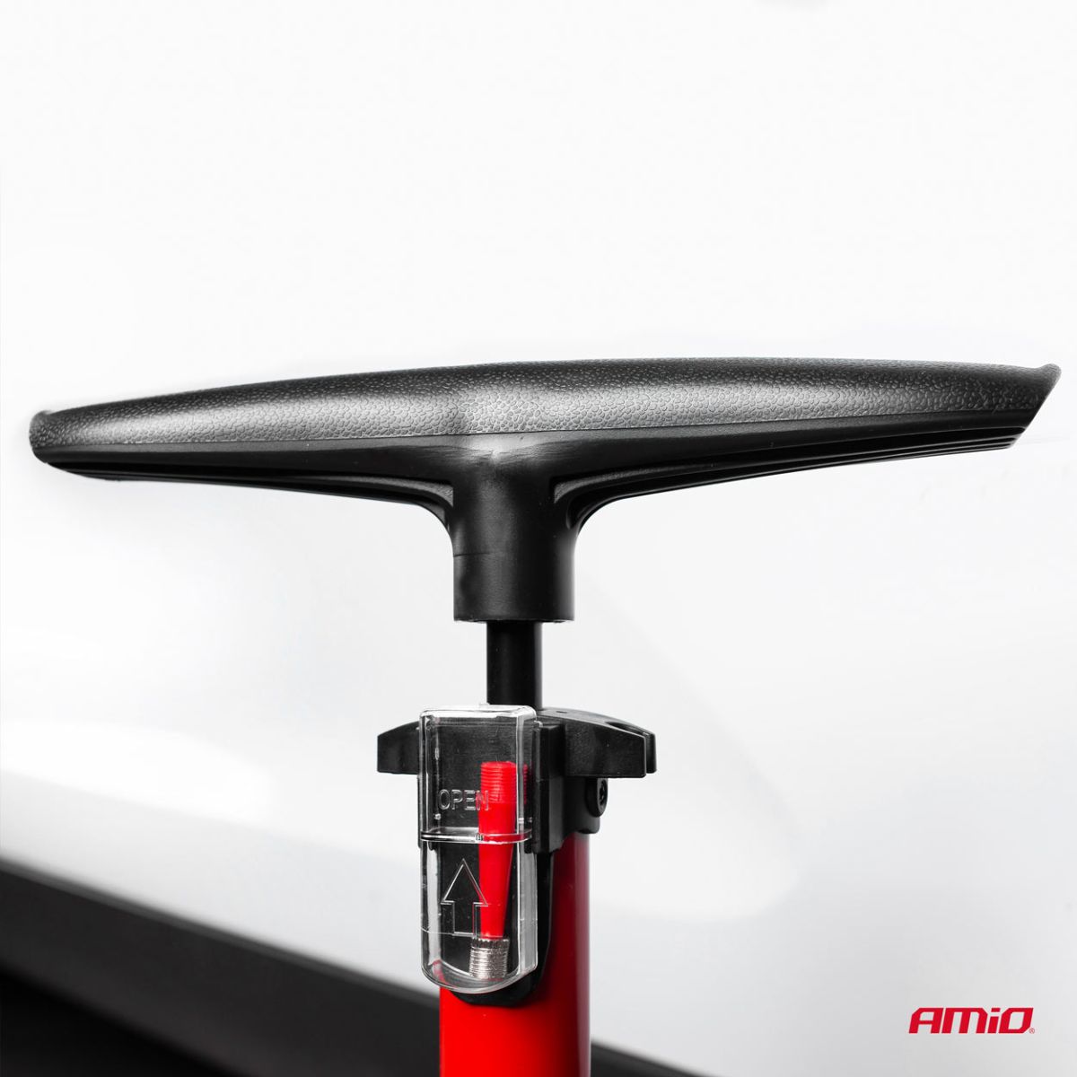 Strong metal hand pump with a maximum pressure of 11 BAR / 160 PSI. It has a double universal head for car and bicycle valves. Additionally, an adapter and needle for pumping mattress, balls, inflatable toys etc. are included.