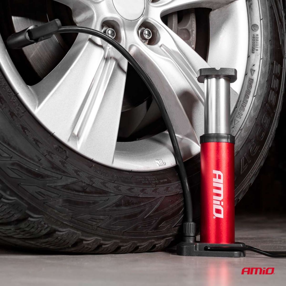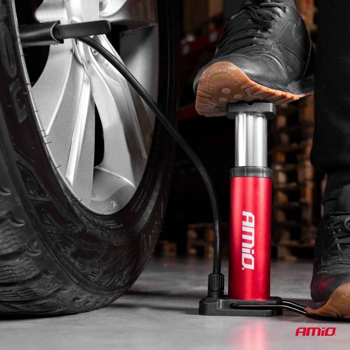 Strong metal foot pump with a maximum pressure of 11 BAR / 160 PSI. Easyly to use, and and thanks to its small size, easy to transport and store..