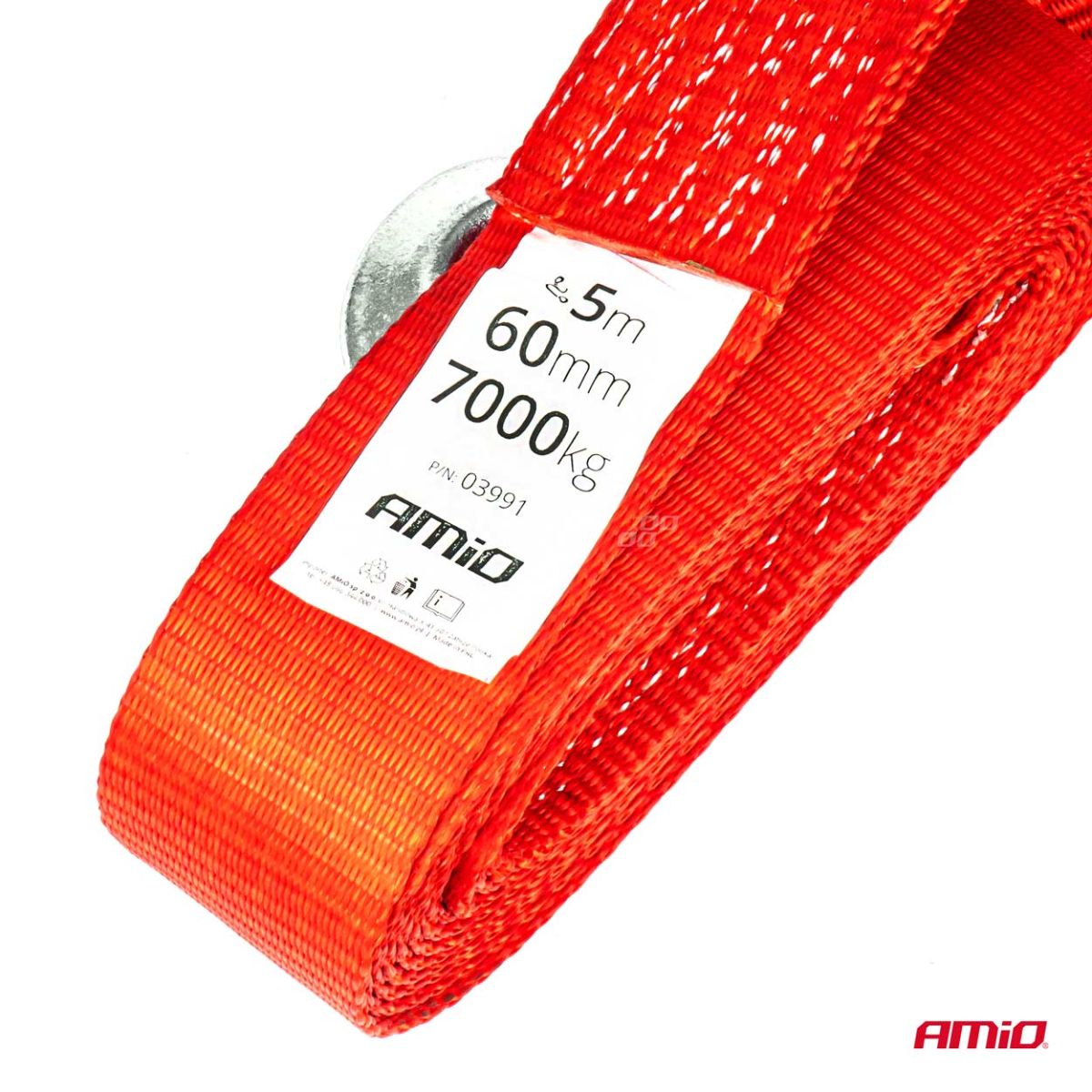 Auto vilkšanas trose - lenta 7000kg 60mm 5m hook+hook AMIO-03991