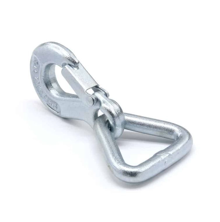 Vilkšanas troses āķis 5000kg 25kn aprīkots ar atloku un trīsstūri. Lietošanai kopā ar 50mm siksnu.