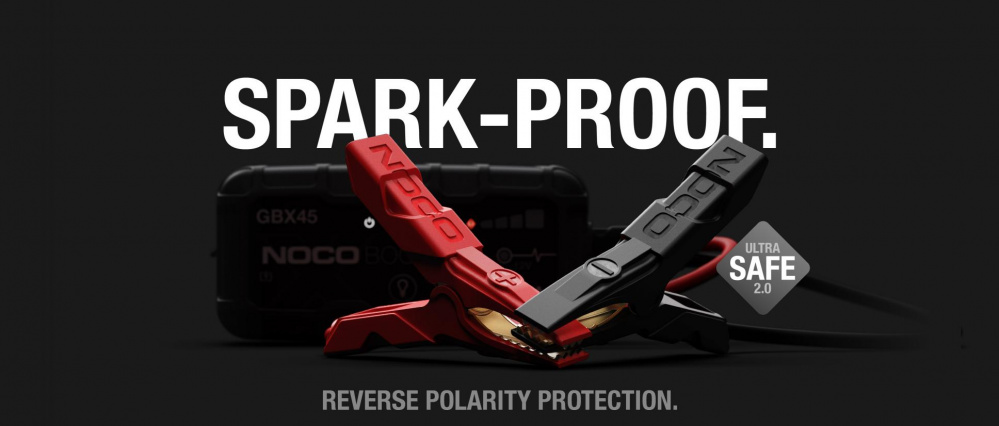 Saderība – NOCO GBX45 ir viens no daudzpusīgākajiem lēcienu starteriem ar 1250 amp starta jaudu. NOCO UltraSafe GBX45 piemērots visa veida transportlīdzekliem.