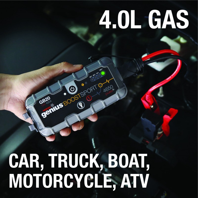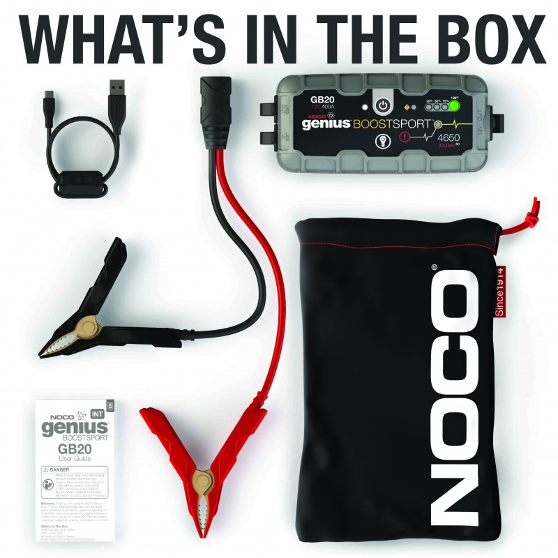 Palaišanas ierīce NOCO GB20 Boost Jump Starter ir pārnēsājams litija jonu akumulatoru starta komplekts, kas nodrošina 500 ampērus, lai sekundēs palaistu nolietotu akumulatoru. Tam ir patentēta drošības tehnoloģija, kas nodrošina dabiski drošus savienojumus un pretējās polaritātes aizsardzību, padarot to drošu un viegli lietojamu. Papildus GB20 Boost ir jaudīga powerbank ierīce, ko var izmantot kā pārnēsājamu enerģijas avotu, lai uzlādētu USB ierīces, piemēram, viedtālruņus, planšetdatorus utt. Paredzēts automašīnām, laivām, motocikliem, RV utt.