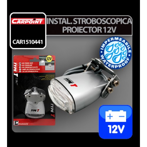12V stroboskopiskais projektors, kas piemērots montāžai ārpus telpām.