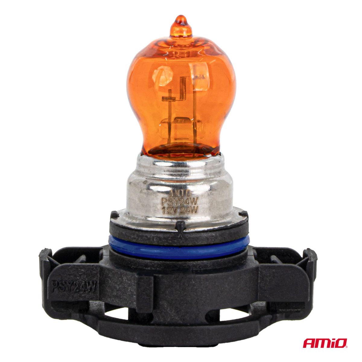 Specialised halogen bulb designed for front and rear turn signals. The PSY24W version in amber (orange) provides the intense orange light required by road standards in many vehicles. Equipped with a PG20-4 base, it is mainly used in modern lens-type headlights and composite modules.