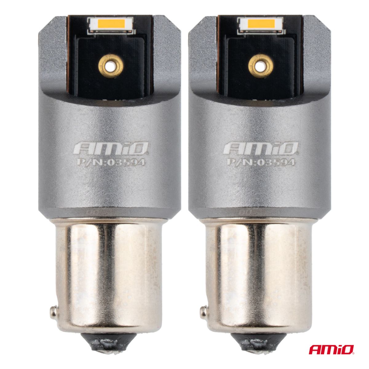 LED CANBUS PRO series PY21W 2x1860 SMD Amber 12V 24V AMIO-03594