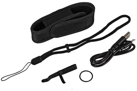 Iepakojumā: Kabatas lukturis, 650mAh akumulators (16340, Li-Ion), futrālis, USB kabelis, metāla klipsis un rezerves O-gredzens.