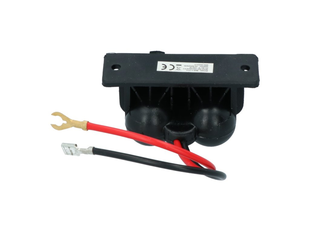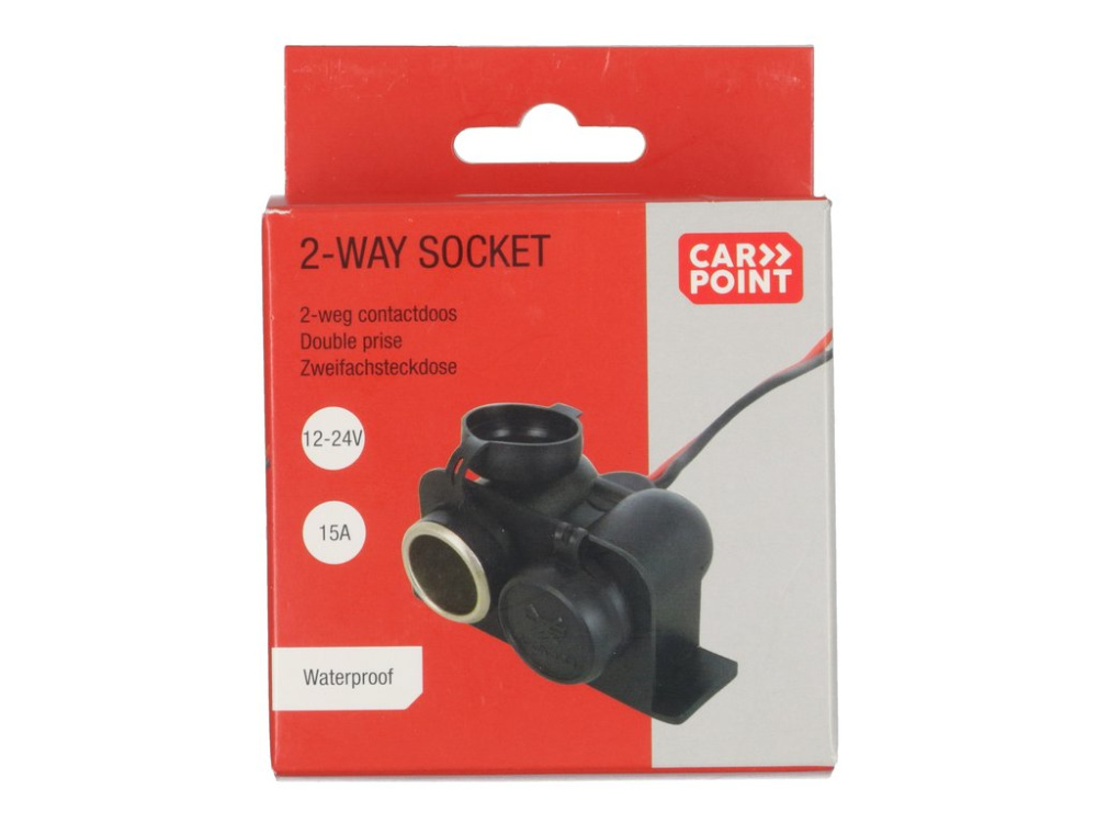 Carpoint virsmas montāžas ligzda ar diviem 12 vai 24 voltu savienojumiem. Piemērots standarta 21 mm cigarešu aizdedzinātāja spraudnim. Krāsu kodēti kabeļi ar kabeļa garumu 15 centimetri. Ieskaitot putekļu vāku, maksimālā slodze līdz 15 ampēriem.
