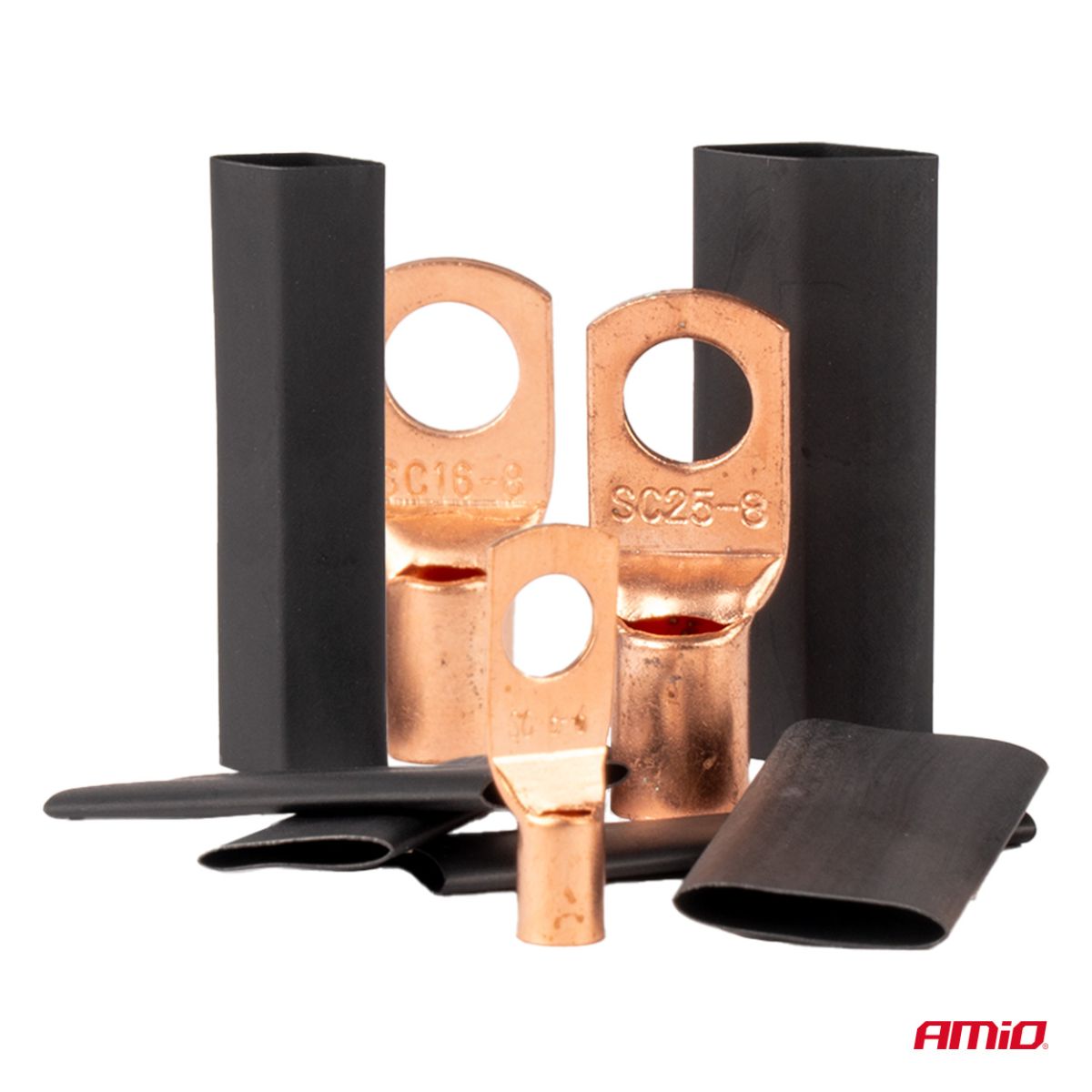 Heat shrink sleeves - 80 heat shrink sleeves in various sizes guarantee effective protection of the connections against moisture, dirt and mechanical damage, ensuring long-lasting and safe use. When heated, the shrouds shrink to form a tight and robust connection.