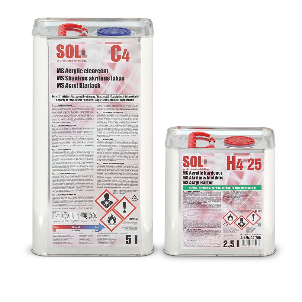 SOLL C4 MS Divkomponentu akrila laka ar H4 25 parasto cietinātāju 7,5 l