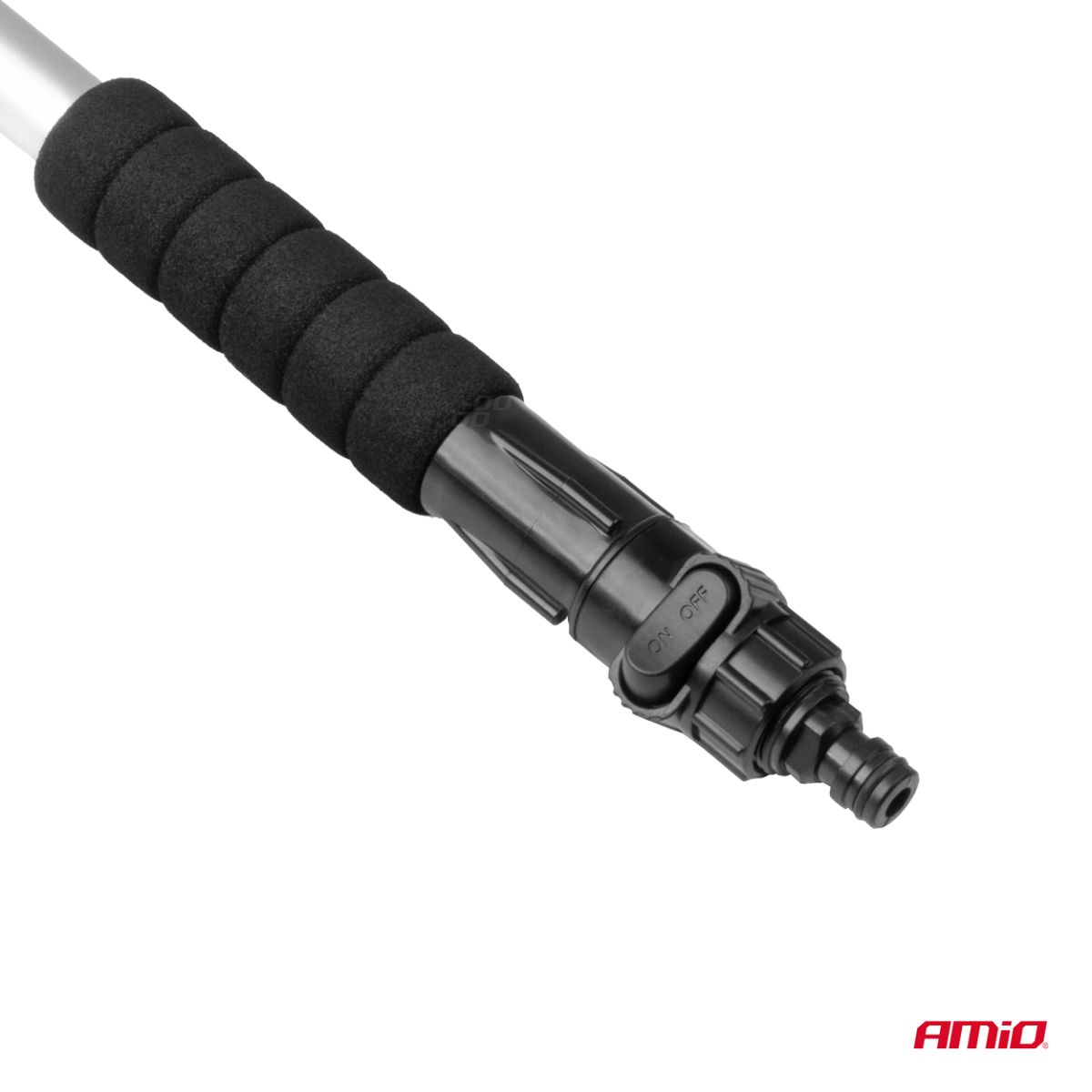 The object of the sale is an extremely resistant, durable and weatherproof car wash brush. The brush has a comfortable aluminum handle - along with a telescopic handle. The brush on the telescopic boom, can reach a maximum of 200 cm. From now on, washing the car, will become a pleasure for us. The brush is very useful around vehicles, or in the houses themselves, in hard-to-reach and high places. The handle has foam handles, a quick coupling for connecting a water hose and a water flow valve.