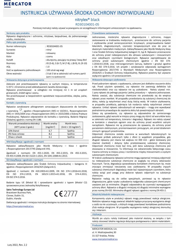 BLACK NITRILIC Gloves MERCATOR M 100 USE Model Nitrylex Black.