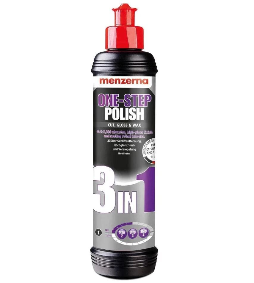 Menzerna One Step Polish 3 in 1, 250 ml ir jaunākais Menzerna produkts tirgū. Tas vienlaikus izpilda 3 soļus. Viegli novērš mikroskrāpējumus un samazina hologrammas. Nodrošina izturīgu aizsardzību ar augstu spīdumu. Ideāli piemērots lietotu transportlīdzekļu pulēšanas un atjaunošanas iesācējiem.