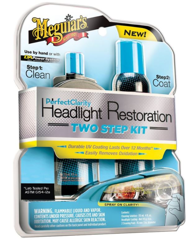 Meguiar’s Perfect Clarity priekšējo lukturu atjaunošanas komplekts ļauj ātri un viegli atjaunot blāvus, dzeltenīgus un oksidētus lukturus. Meguiar patentētais pārklājums novērš atkārtotu oksidēšanos līdz pat gadam! (* Laboratorija pārbaudīta atbilstoši ASTM G154-12a).