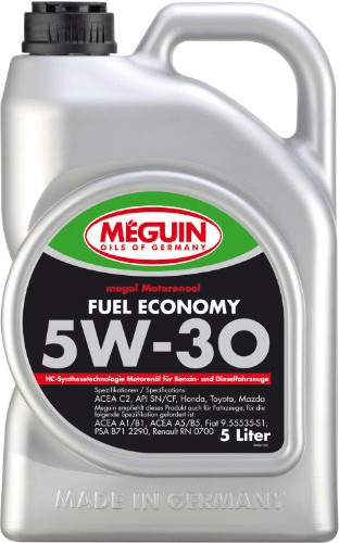 Meguin Fuel Economy - SAE 5W-30 - sintētiskā motoreļļa benzīna un dīzeļdzinējiem, piemērota vairākiem modeļiem kā Fiat, Lancia, Alfa Romeo un jaunajiem dzinējiem no Honda, Toyota, Mazda.