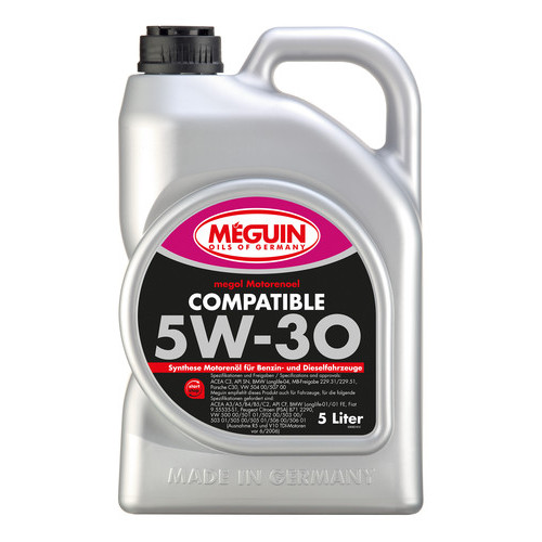 Meguin Compatible - SAE 5W-30 - augstākās kvalitātes sintētiskā motoreļļa pagarinātiem un standarta eļļas nomaiņas intervāliem.