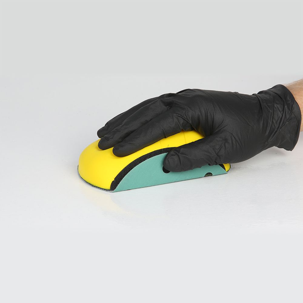 Slīpēšanas bloks, kas paredzēts lietošanai ar Ø150 mm diskiem. Iegriezumi ļauj blokam ērti saliekties, slīpējot dažādas izliektas virsmas.