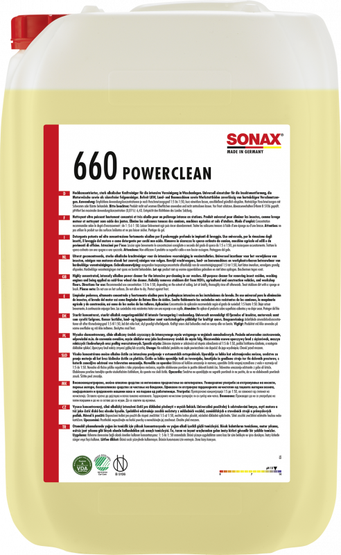 SONAX SX 660705 auto tīrīšanas līdzeklis ir ļoti sārmains un efektīvs tīrīšanas koncentrāts, kas nodrošina spēcīgu iepriekšēju tīrīšanu automātiskajās automazgātuvēs un pašapkalpošanās iekārtās. Piemērots arī kā bezskābju auto disku tīrītājs, mazgāšanas birstes tīrīšanai un komerciālo transportlīdzekļu tīrīšanai. Bez fosfātiem. Ph 13