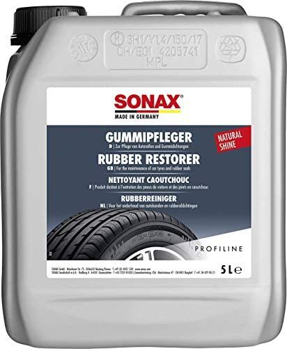 SONAX Rubber Protectant, Gumijas aizsardzības līdzeklis. Notīra automašīnu gumijas detaļas un uzturnto elastību. Paildzina gumijas darba mūžu un atjauno krāsu. Bez piepūles attīra riepas un grīdas paklājusnun atjauno to sākotnējo svaigo izskatu. Aizsargā pret sasalšanu. 5L.