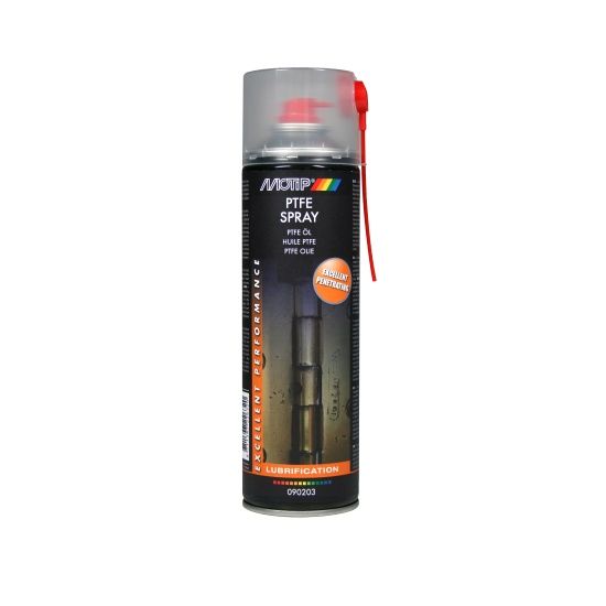 MOTIP PTFE SPRAY 500 ml ir berzi mazinoša teflona smērviela. Teflona daļiņas ir samaisītas ar eļļu, kas lieliski palīdz smērvielai iekļūt starp dažādām virsmām, veidojot īpaši plānu smērvielas kārtiņu.