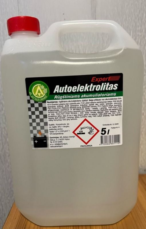 Akumulatoru elektrolīts, Elektrolīts tiek izgatavots no destilēta ūdens un attīrītas sērskābes. 5 litri