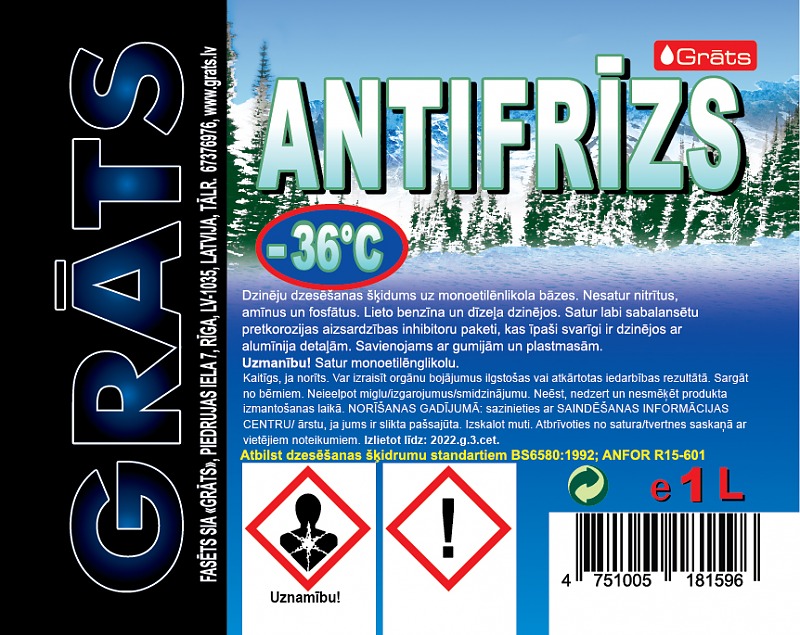 Dzinēju dzesēšanas šķidrums zaļais antifrīzs -36C° uz monoetilēnlikola bāzes. Nesatur nitrītus, amīnus un fosfātus. Lieto benzīna un dīzeļa dzinējos. Satur labi sabalansētu pretkorozijas aizsardzības inhibitoru paketi, kas īpaši svarīgi ir dzinējos ar alumīnija detaļām. Savienojams ar gumijām un plastmasām
