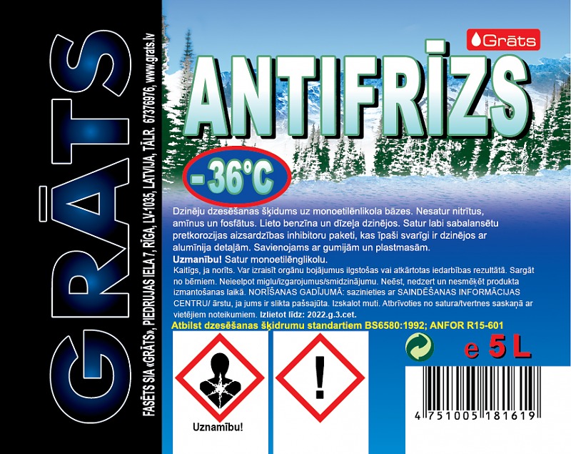 Dzinēju dzesēšanas šķidrums zaļais antifrīzs -36C° uz monoetilēnlikola bāzes. Nesatur nitrītus, amīnus un fosfātus. Lieto benzīna un dīzeļa dzinējos. Satur labi sabalansētu pretkorozijas aizsardzības inhibitoru paketi, kas īpaši svarīgi ir dzinējos ar alumīnija detaļām. Savienojams ar gumijām un plastmasām