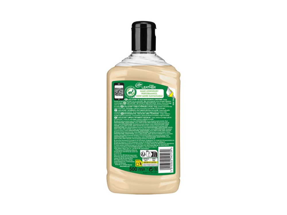 Turtle Wax GL Luxe Leather tīra un aizsargā visus ādas interjerus. Atjauno ādas dabisko maigumu. Aizsargā pret UV starojumu, nodilumu un nelielām plaisām. Bagātīgs, netekošs krēms noņem iesūkušos netīrumus un atjauno virsmas dabisko elastību. Netaukainā formula ir pH līdzsvarota kakao sviesta, E vitamīna un alvejas maisījums, kas kopā atjauno visu ādas apdarei spīdumu un maigumu. Pievienotie UV aizsargi bloķē kaitīgos saules starus, lai novērstu krāsas izbalēšanu, ādas izžūšanu un plaisāšanu, bet kondicionējošās eļļas atjauno elastību un aizsargā ādas apdari.