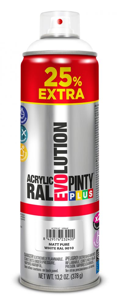 Akrila krāsa aerosolā balts matēts RAL 9010 Evolution PintyPlus 500ml