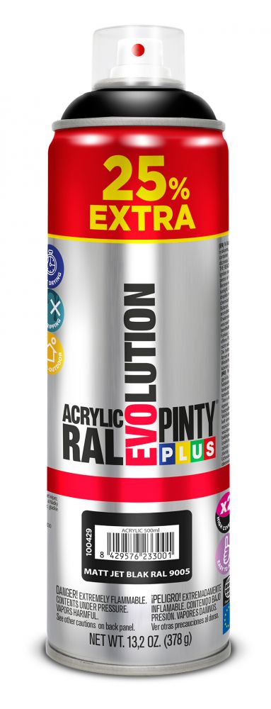 Akrila krāsa aerosolā melns matēts RAL 9005 Evolution PintyPlus 500ml
