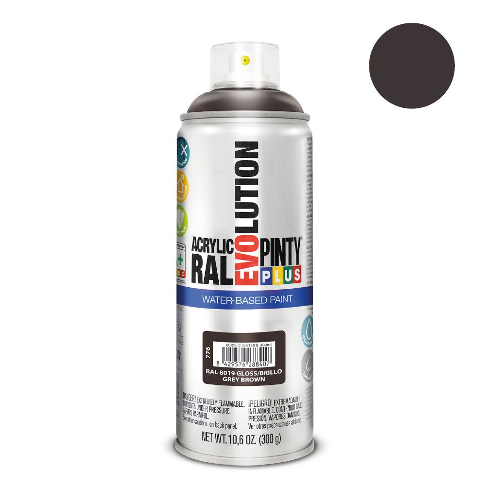 Ūdens bāzes akrila aerosola krāsa pelēkbrūna RAL 8019 PintyPlus Evolution 400ml