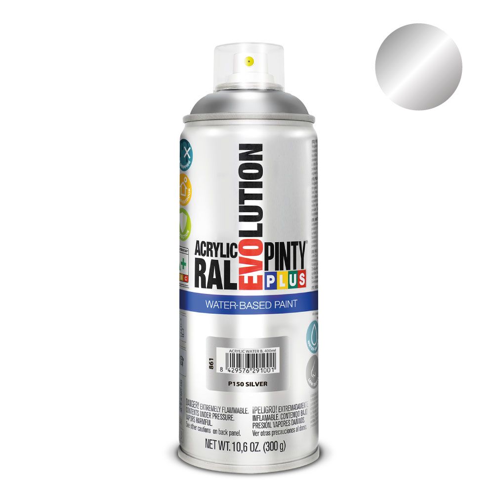Ūdens bāzes akrila aerosola krāsa sudrabs metālikas efekts PintyPlus Evolution 400ml