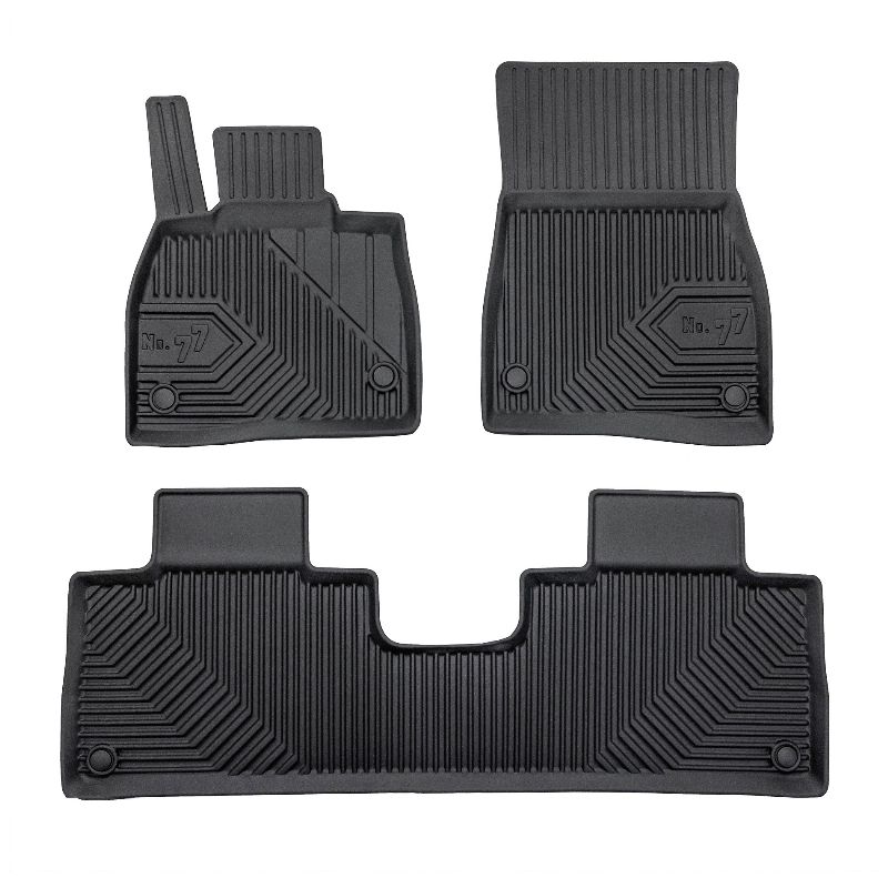Gumijas paklājiņi Premium 77: (augstas kvalitātes plastmasa, gumijas maisījums / TPE, komplekts - 4 gab., melni, malas augstums 4 cm, uzstādīšanas metode - klipši).AUTO PAKLĀJIŅI FROGUM 77 PREMIUM. Ideāla piegulšana, pateicoties inovatīvai 3D skenēšanas tehnoloģijai, Malas augstums - 4 cm nodrošina lielāku aizsardzību pret netīrumiem, Moderns un funkcionāls dizains, kas notur netīrumus paklājiņa iekšpusē, Neslīdošas speciālas klipši, viegli uzstādāmi, Īpaša aizsardzība, kas ļauj nolaist vadītāja kāju. Augsta līmeņa aizsardzība jūsu automašīnai, paklājiņi lieliski pieguļ un perfekti pieguļ salona grīdai. Moderns un funkcionāls dizains, kā arī augsta mala garantē efektīvu ūdens un netīrumu savākšanu un novērš to noplūdi. Tas uztur automašīnas salonu tīru. Izgatavoti no augstas kvalitātes gumijas, kas nesatur toksiskas sastāvdaļas. Bez smaržas. Paklājiņiem ir klipši, tāpēc tos ir viegli piestiprināt pie grīdas. Gumijas paklājiņi saglabā savu elastību pat pie temperatūras izmaiņām. Īpašā virsma neļauj paklājiņiem slīdēt braukšanas laikā, kas ievērojami ietekmē brauciena drošību un komfortu.