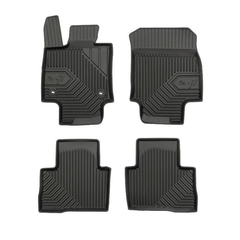 Gumijas paklājiņi Premium 77: (augstas kvalitātes plastmasa, gumijas maisījums / TPE, komplekts - 4 gab., melni, malas augstums 4 cm, uzstādīšanas metode - klipši).AUTO PAKLĀJIŅI FROGUM 77 PREMIUM. Ideāla piegulšana, pateicoties inovatīvai 3D skenēšanas tehnoloģijai, Malas augstums - 4 cm nodrošina lielāku aizsardzību pret netīrumiem, Moderns un funkcionāls dizains, kas notur netīrumus paklājiņa iekšpusē, Neslīdošas speciālas klipši, viegli uzstādāmi, Īpaša aizsardzība, kas ļauj nolaist vadītāja kāju. Augsta līmeņa aizsardzība jūsu automašīnai, paklājiņi lieliski pieguļ un perfekti pieguļ salona grīdai. Moderns un funkcionāls dizains, kā arī augsta mala garantē efektīvu ūdens un netīrumu savākšanu un novērš to noplūdi. Tas uztur automašīnas salonu tīru. Izgatavoti no augstas kvalitātes gumijas, kas nesatur toksiskas sastāvdaļas. Bez smaržas. Paklājiņiem ir klipši, tāpēc tos ir viegli piestiprināt pie grīdas. Gumijas paklājiņi saglabā savu elastību pat pie temperatūras izmaiņām. Īpašā virsma neļauj paklājiņiem slīdēt braukšanas laikā, kas ievērojami ietekmē brauciena drošību un komfortu.