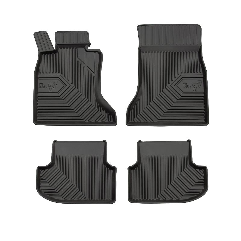 Gumijas paklājiņi Premium 77: (augstas kvalitātes plastmasa, gumijas maisījums / TPE, komplekts - 4 gab., melni, malas augstums 4 cm, uzstādīšanas metode - klipši).AUTO PAKLĀJIŅI FROGUM 77 PREMIUM. Ideāla piegulšana, pateicoties inovatīvai 3D skenēšanas tehnoloģijai, Malas augstums - 4 cm nodrošina lielāku aizsardzību pret netīrumiem, Moderns un funkcionāls dizains, kas notur netīrumus paklājiņa iekšpusē, Neslīdošas speciālas klipši, viegli uzstādāmi, Īpaša aizsardzība, kas ļauj nolaist vadītāja kāju. Augsta līmeņa aizsardzība jūsu automašīnai, paklājiņi lieliski pieguļ un perfekti pieguļ salona grīdai. Moderns un funkcionāls dizains, kā arī augsta mala garantē efektīvu ūdens un netīrumu savākšanu un novērš to noplūdi. Tas uztur automašīnas salonu tīru. Izgatavoti no augstas kvalitātes gumijas, kas nesatur toksiskas sastāvdaļas. Bez smaržas. Paklājiņiem ir klipši, tāpēc tos ir viegli piestiprināt pie grīdas. Gumijas paklājiņi saglabā savu elastību pat pie temperatūras izmaiņām. Īpašā virsma neļauj paklājiņiem slīdēt braukšanas laikā, kas ievērojami ietekmē brauciena drošību un komfortu.