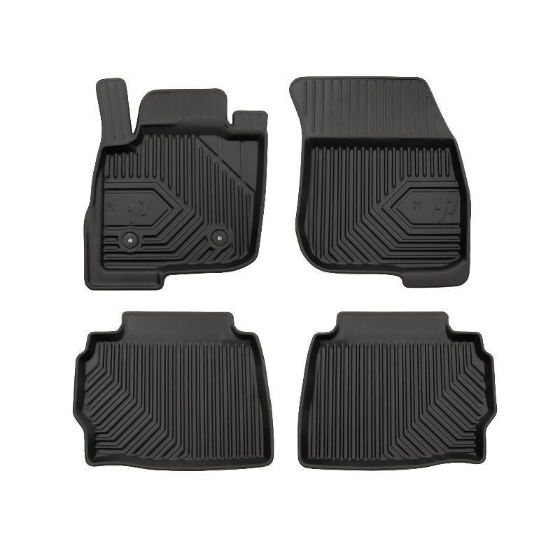 Gumijas paklājiņi Premium 77: (augstas kvalitātes plastmasa, gumijas maisījums / TPE, komplekts - 4 gab., melni, malas augstums 4 cm, uzstādīšanas metode - klipši).AUTO PAKLĀJIŅI FROGUM 77 PREMIUM. Ideāla piegulšana, pateicoties inovatīvai 3D skenēšanas tehnoloģijai, Malas augstums - 4 cm nodrošina lielāku aizsardzību pret netīrumiem, Moderns un funkcionāls dizains, kas notur netīrumus paklājiņa iekšpusē, Neslīdošas speciālas klipši, viegli uzstādāmi, Īpaša aizsardzība, kas ļauj nolaist vadītāja kāju. Augsta līmeņa aizsardzība jūsu automašīnai, paklājiņi lieliski pieguļ un perfekti pieguļ salona grīdai. Moderns un funkcionāls dizains, kā arī augsta mala garantē efektīvu ūdens un netīrumu savākšanu un novērš to noplūdi. Tas uztur automašīnas salonu tīru. Izgatavoti no augstas kvalitātes gumijas, kas nesatur toksiskas sastāvdaļas. Bez smaržas. Paklājiņiem ir klipši, tāpēc tos ir viegli piestiprināt pie grīdas. Gumijas paklājiņi saglabā savu elastību pat pie temperatūras izmaiņām. Īpašā virsma neļauj paklājiņiem slīdēt braukšanas laikā, kas ievērojami ietekmē brauciena drošību un komfortu.